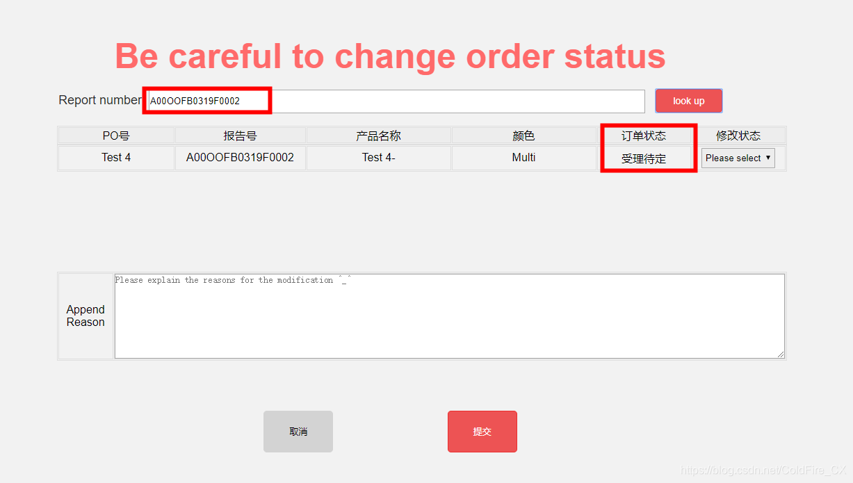 接下来说一下,后台怎么实现在文本框输入报告号,也就是reportNo后,查到这一单的订单信息的